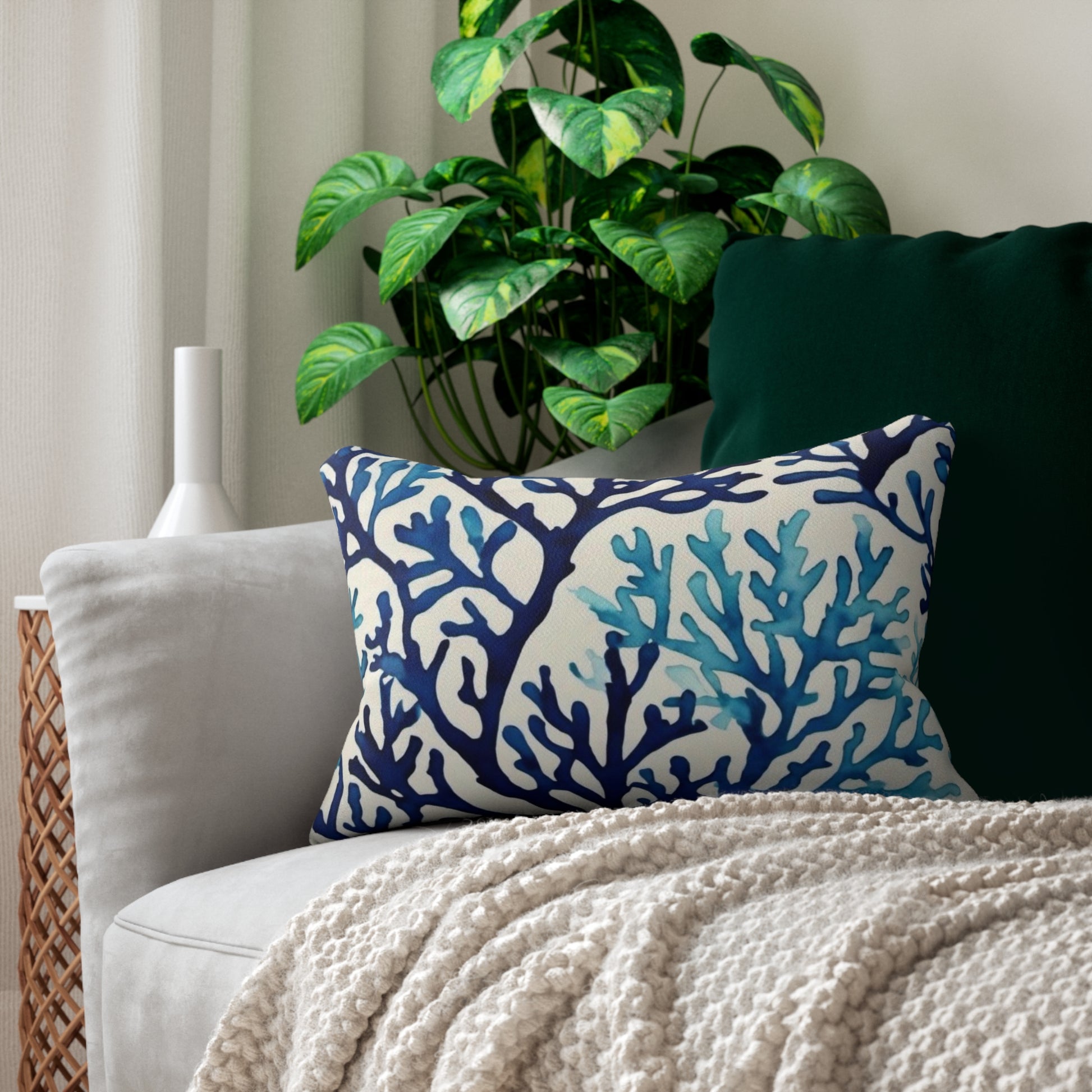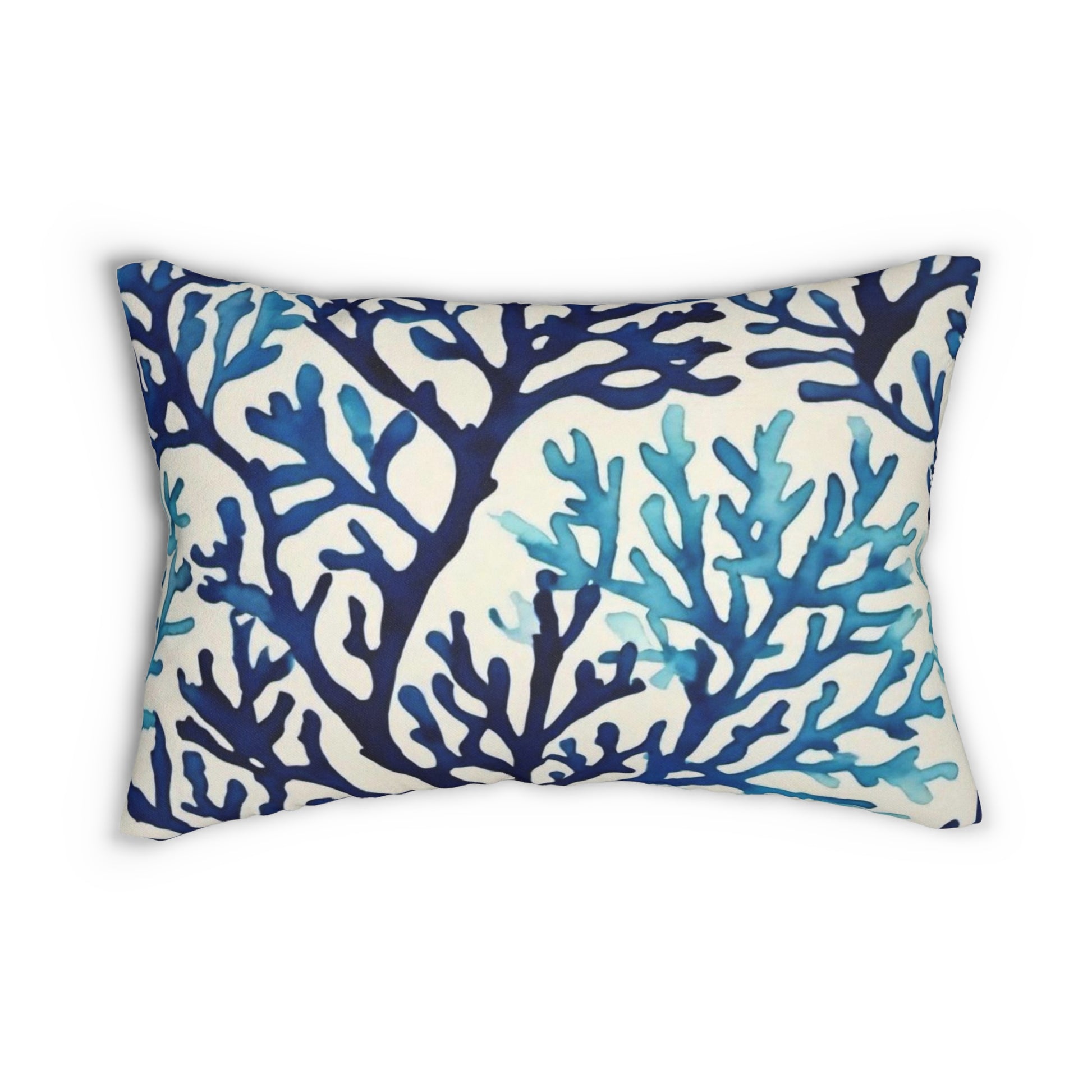 Blue Coral Watercolor Spun Polyester Lumbar Pillow