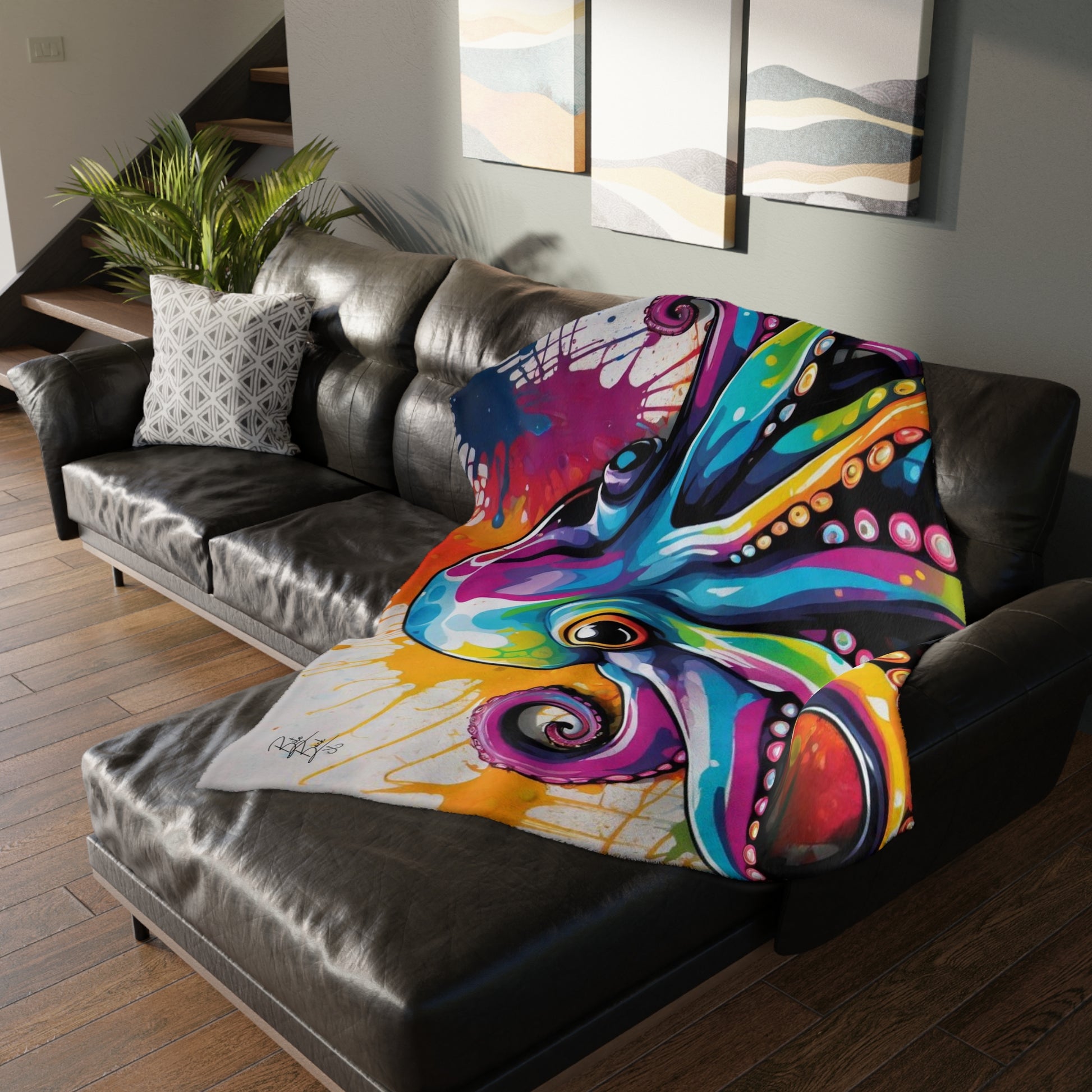๐ This isn't just any blanket; it's an octo-rific masterpiece that's super soft to the touch and comes already customized with our unique Octopus design. It's like getting a warm hug from the deep blue sea!