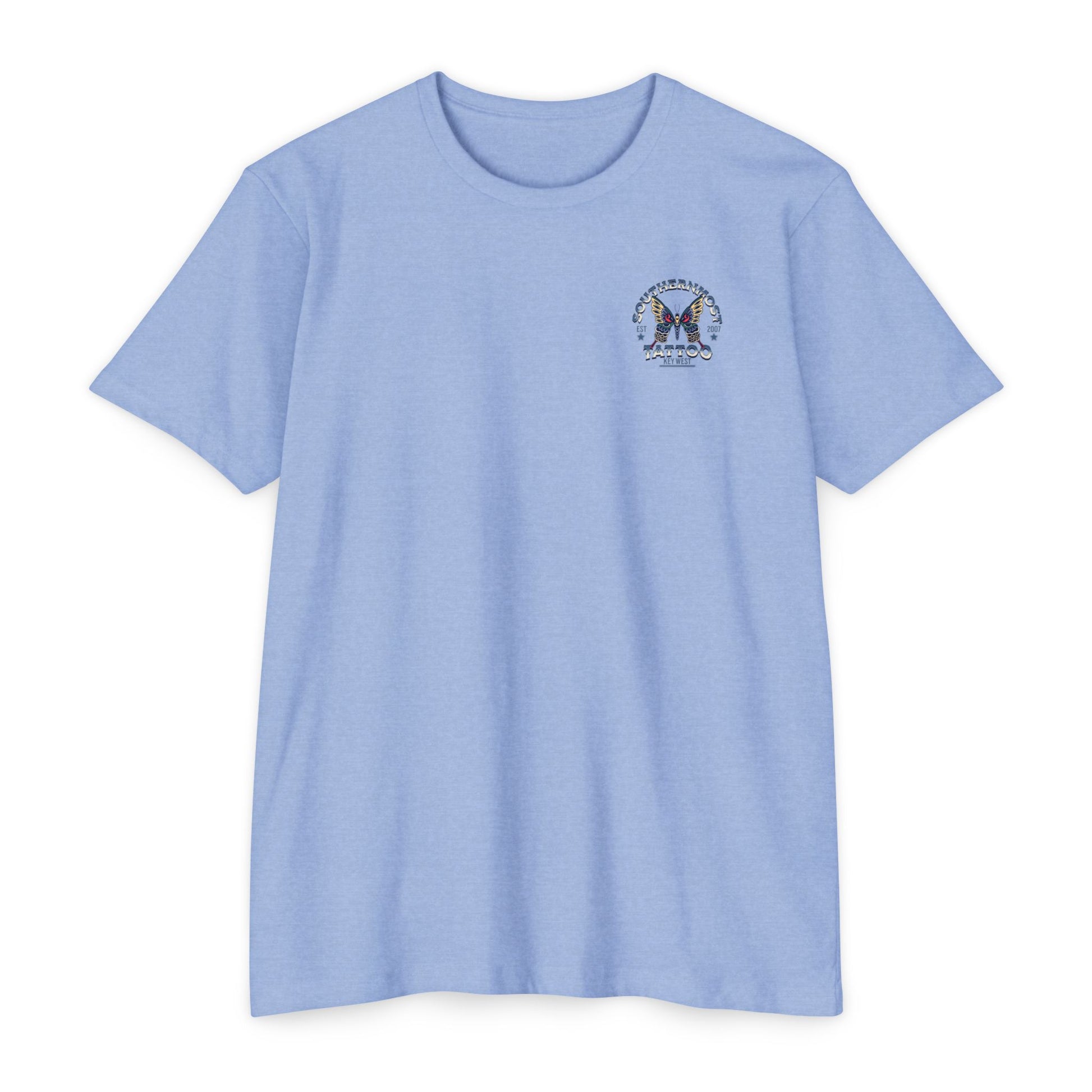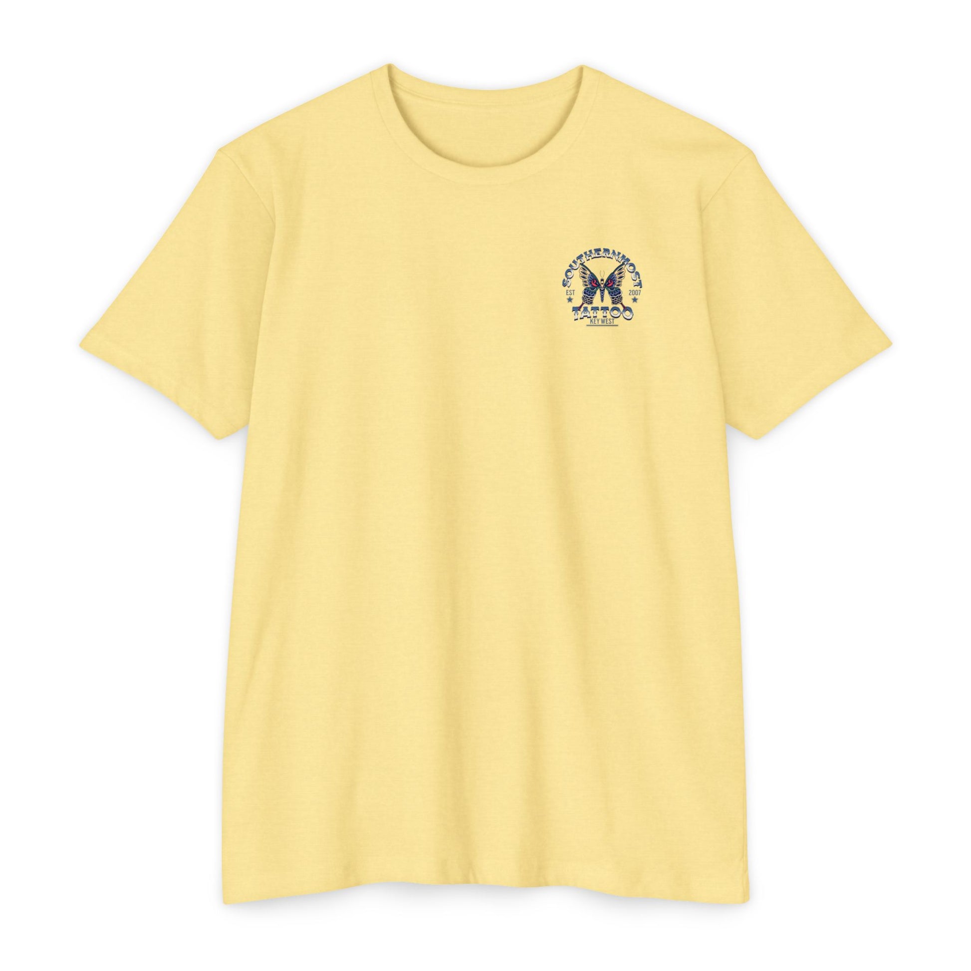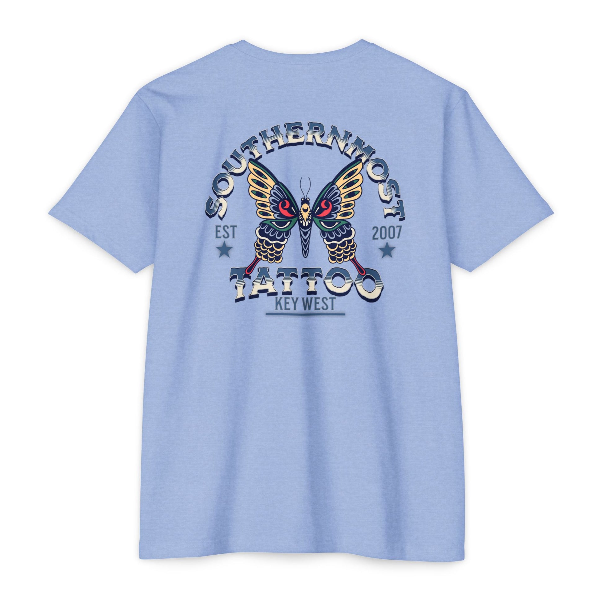 Introducing the Southernmost Tattoo Butterfly design T-shirt - where style meets comfort! Our unisex CVC jersey tee offers the perfect blend of quality and comfort. Crafted from a 60% combed, ring-spun cotton and 40% polyester blend, it's not only incredibly soft but also highly durable.