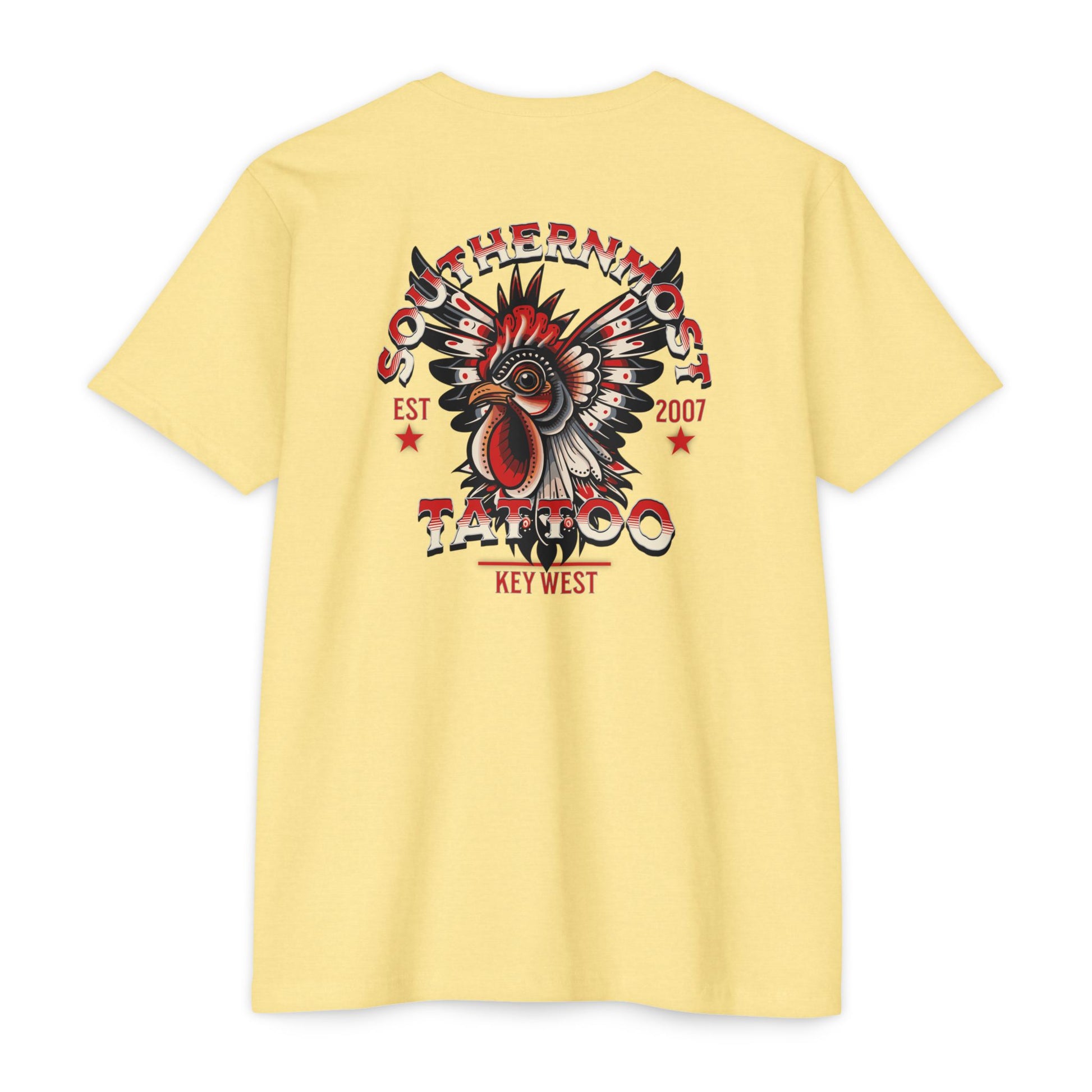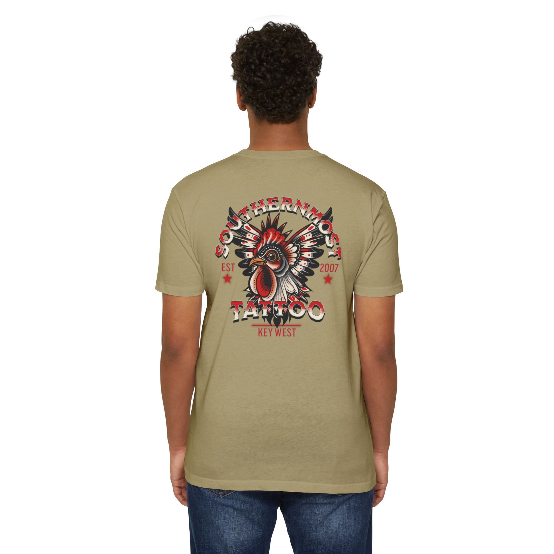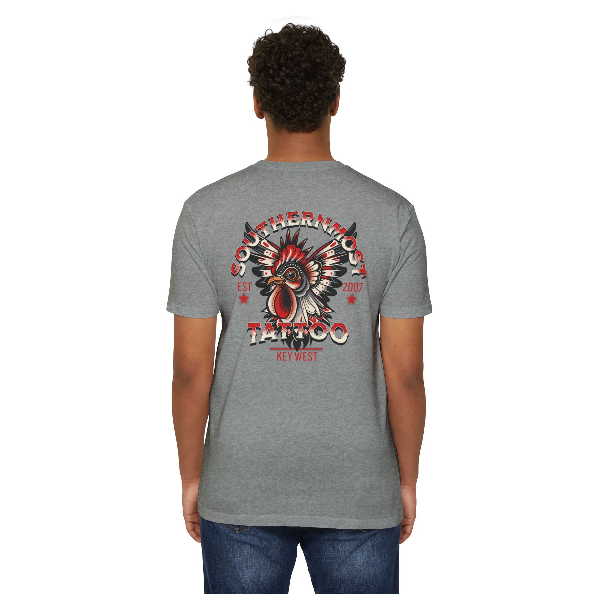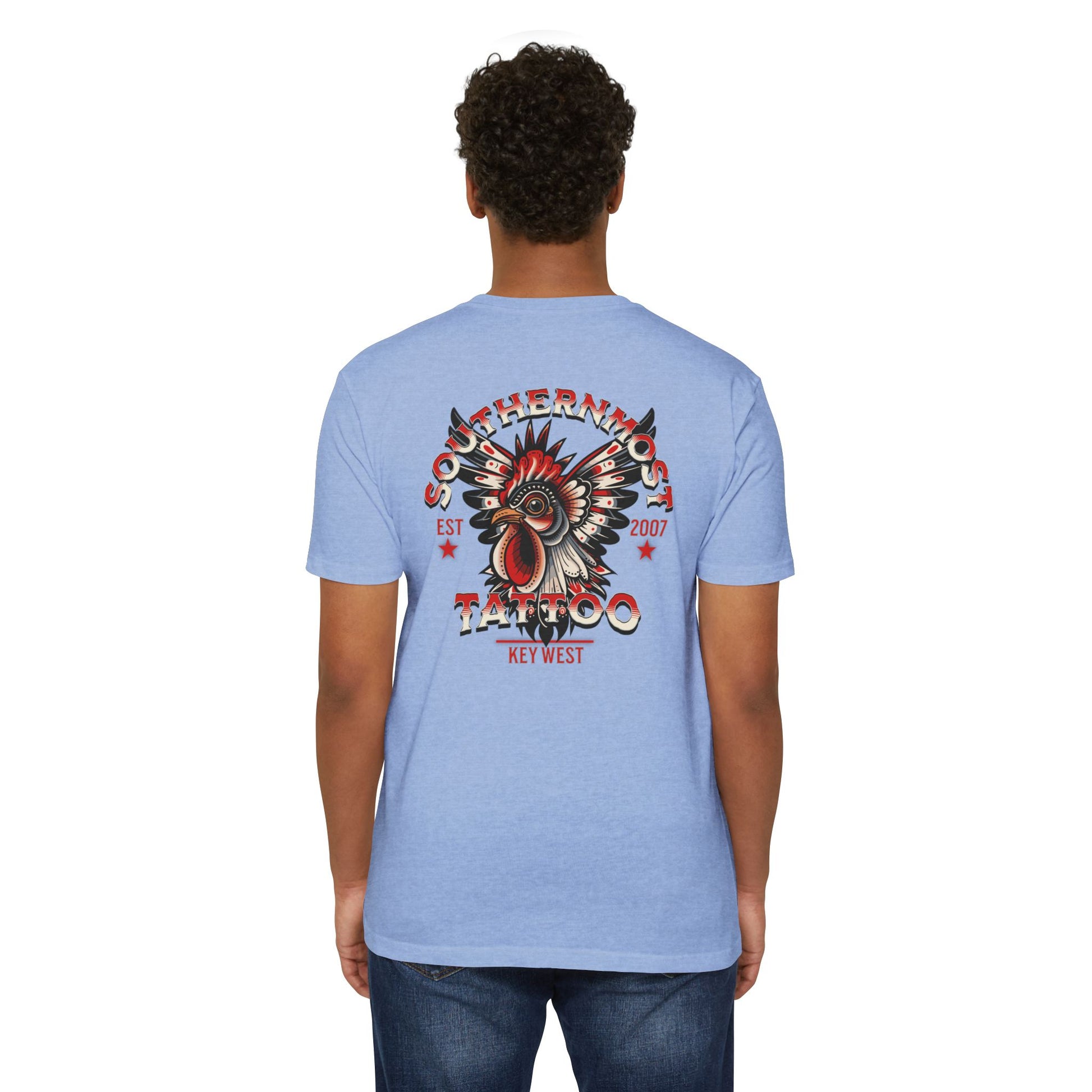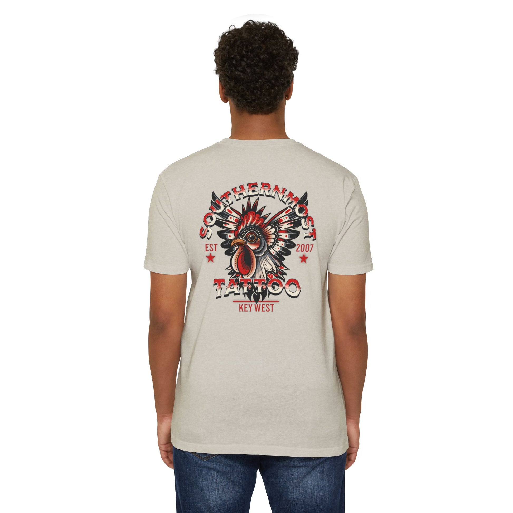 Introducing the Southernmost Tattoo Traditional Rooster design T-shirt - where style meets comfort! Our unisex CVC jersey tee offers the perfect blend of quality and comfort. Crafted from a 60% combed, ring-spun cotton and 40% polyester blend, it's not only incredibly soft but also highly durable.